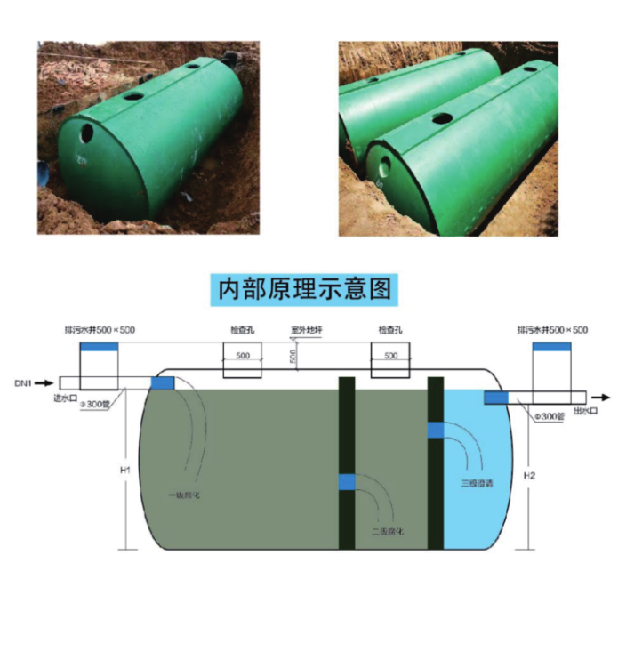 強度高:罐體內設鋼筋加強帶作力學保護,抗壓強度高、承載能力強、耐腐蝕、抗酸堿,經久耐用。